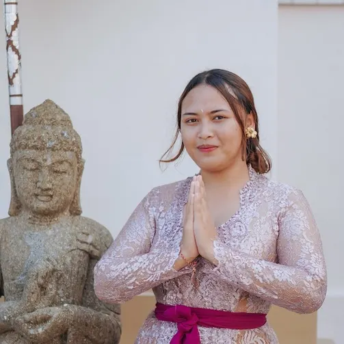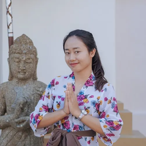 Putu Maryam, founder of Bodhi Leaf and Floating Leaf. Her roots trace back to The Balinese Royal Family of Karangasem. Raised with traditional dances, healing arts, and Balinese culture, Putu brings authenticity to your experience.